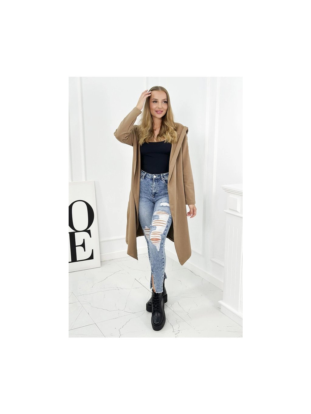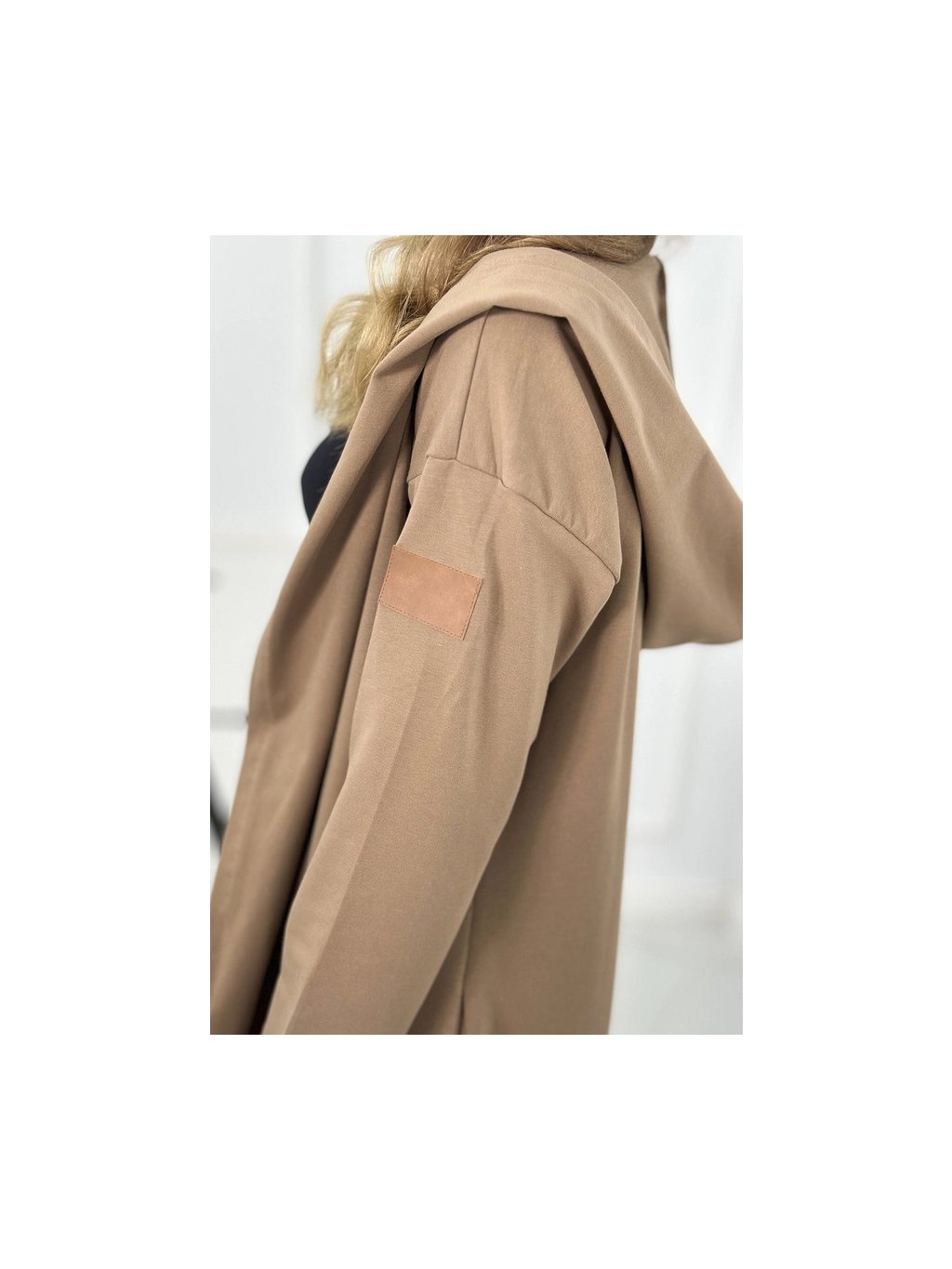 Basic kardigan s kapsami a širokou kapucí. Kardigan nemá žádný potisk, pouze na rameni ozdobný koženkový štítek. Kardigan je vyroben z vysoce kvalitního materiálu. Univerzální velikost (ONE SIZE) bude vhodná pro ženy, které nosí velikosti S, M, L nebo XL.