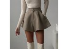 Dámská krátká bunda z eko kůže s páskem a límcem Kika cappuccino