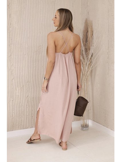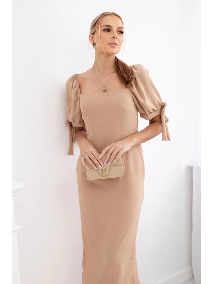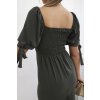 Šaty vzadu nařasené se zavazovacími rukávy khaki