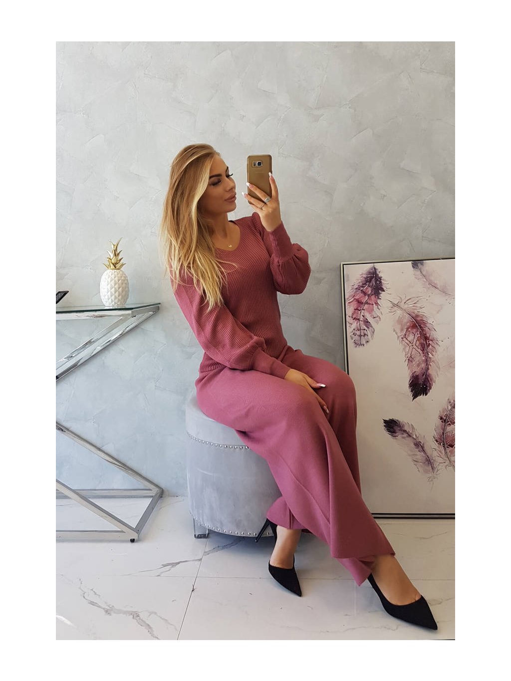 Svetrová souprava tmavě růžová