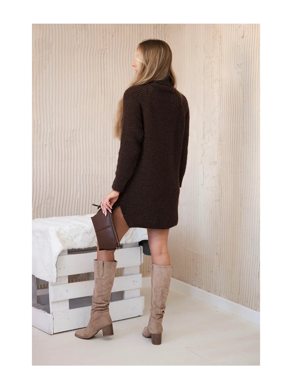 Svetrové šaty s rolákem Zara hnědé