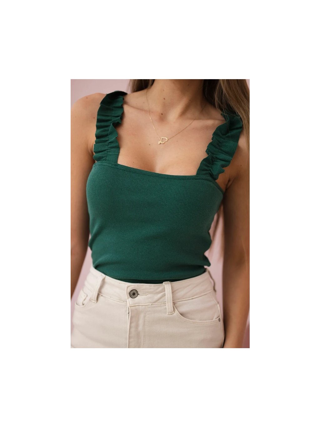 Tílko s nařasenými ramínky zelené